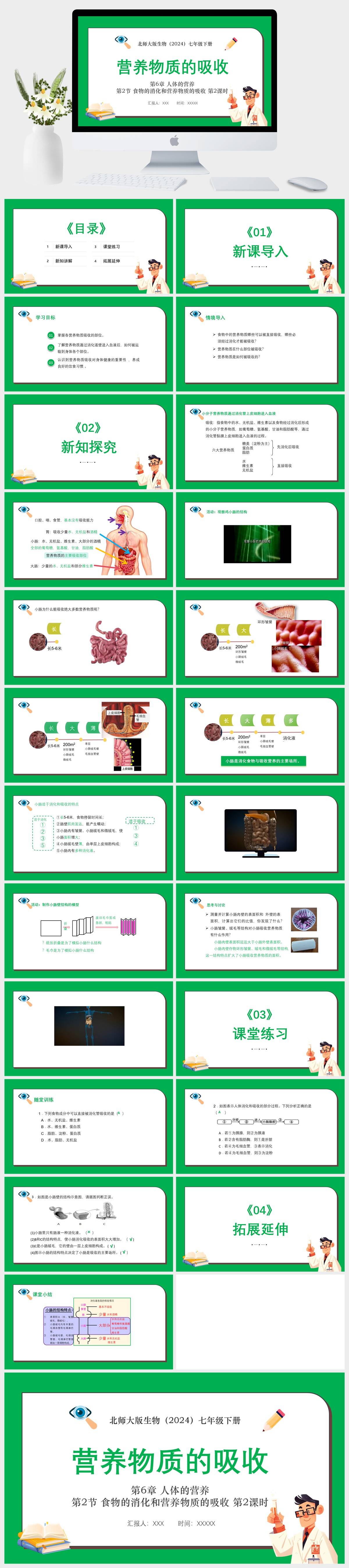 HKSW1779-北师大版生物(2024)七年级下册第6章 人体的营养第2节 食物的消化和营养物质的吸收 第2课时 营养物质的吸收PPT模板成品课件