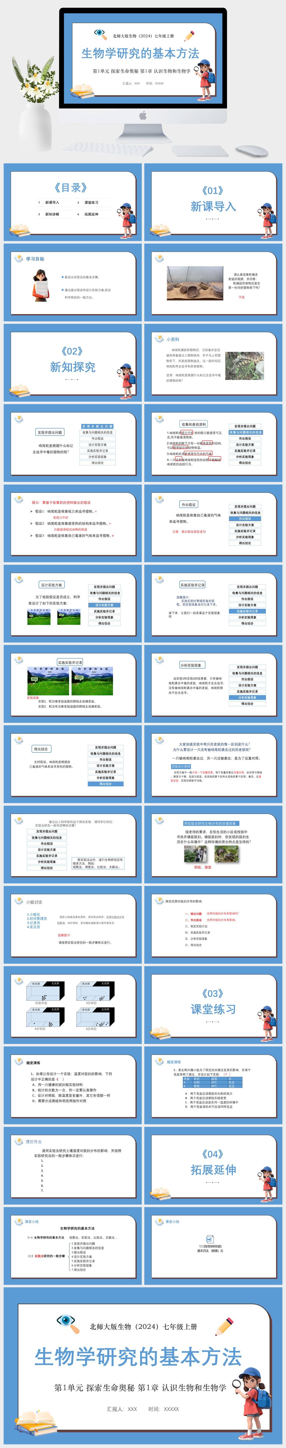 HKSW1796-北师大版生物(2024)七年级上册 第1单元 探索生命奥秘 第1章 认识生物和生物学 生物学研究的基本方法PPT模板成品课件