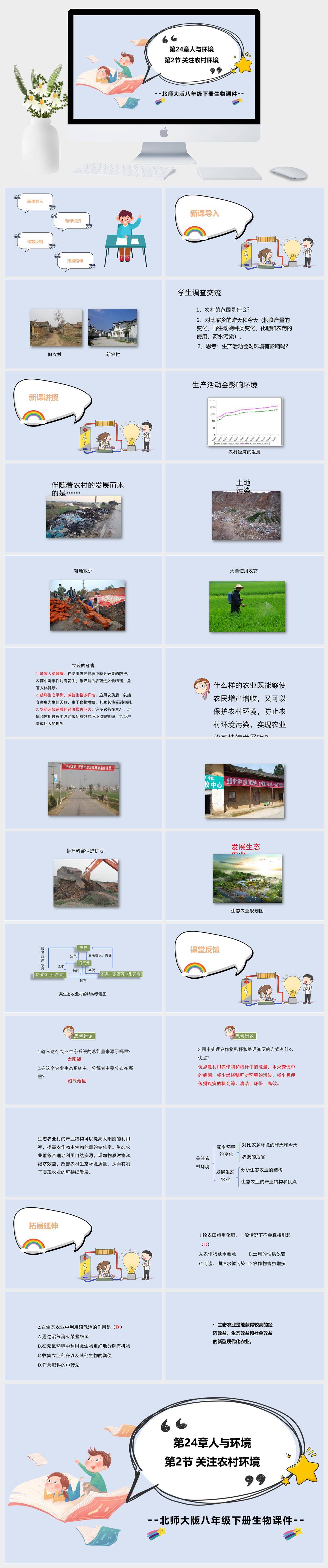 HKSW1822-北师大版八年级下册生物《关注农村环境》课件PPT模板成品课件