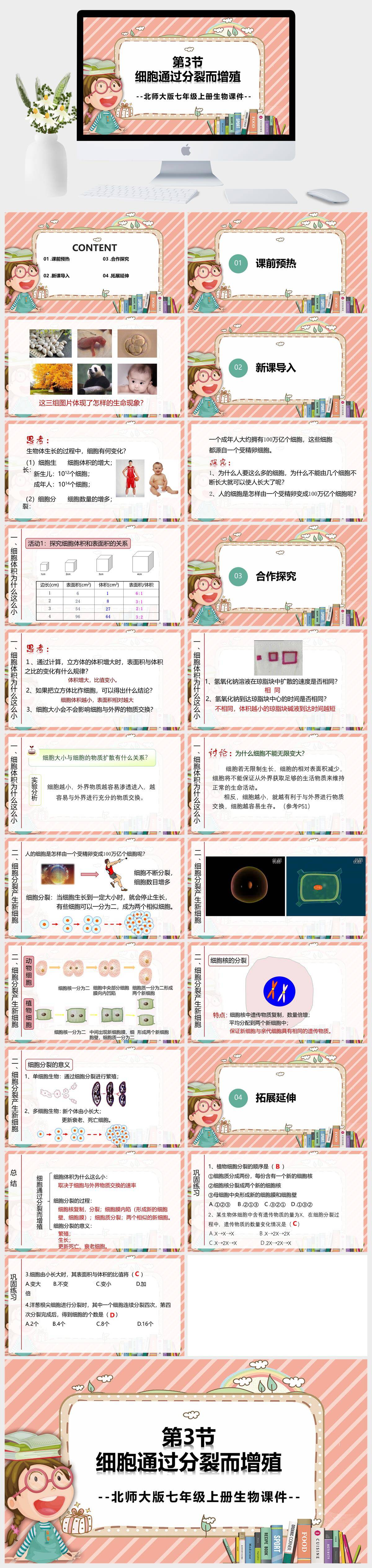 HKSW1930-北师大版七年级上册生物《细胞通过分裂而增殖》课件PPT模板成品课件