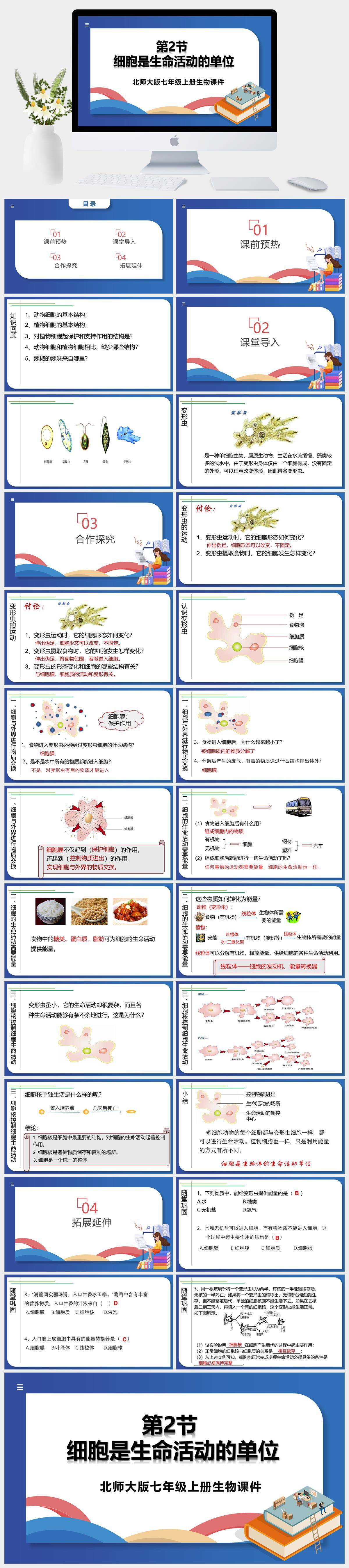 HKSW1944-北师大版七年级上册生物《细胞是生命活动的单位》课件PP T模板成品课件