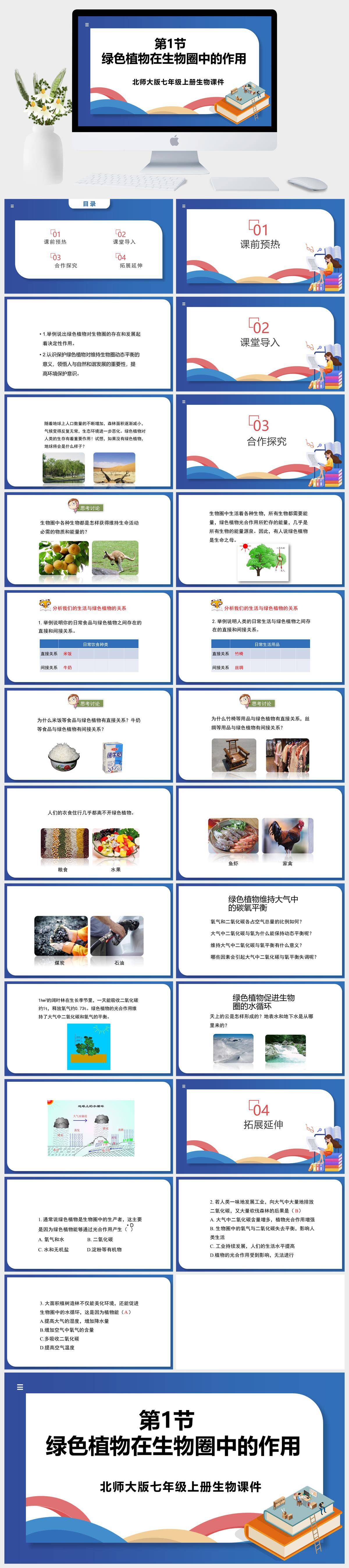 HKSW1972-北师大版七年级上册生物《绿色植物在生物圈中的作用》 课件PPT模板成品课件