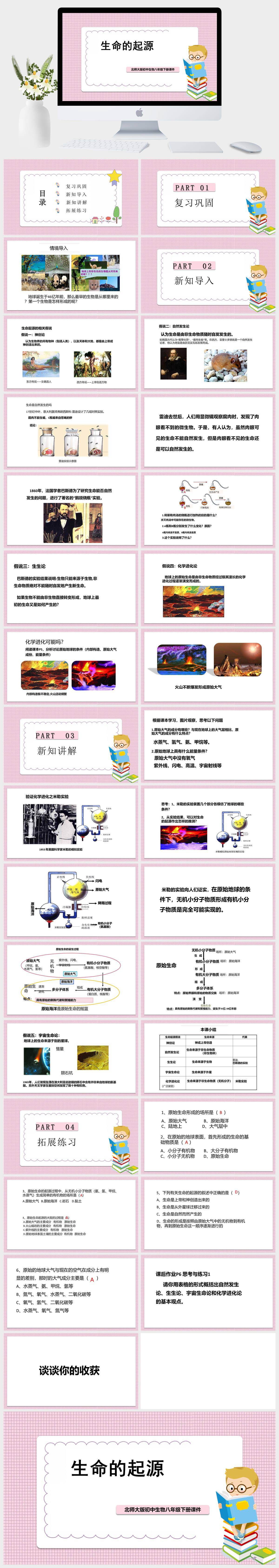 HKSW1993-初中生物北师大版八年级下册《第七单元第21章第1节生命的起源》课件PPT模板成品课件