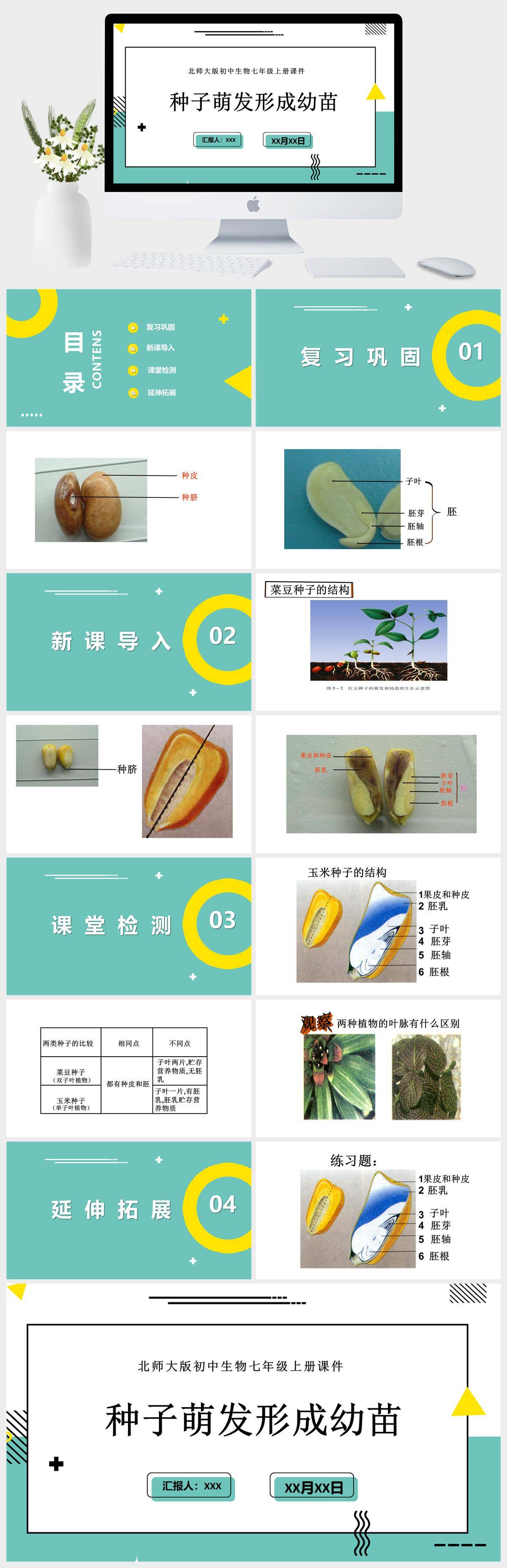 HKSW2035-北师大版初中生物七年级上册课件种子萌发形成幼苗PPT模板成品课件