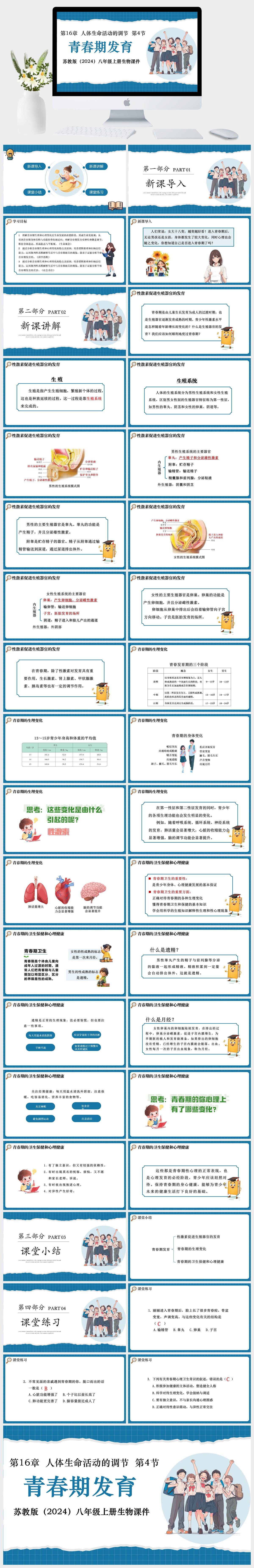 HKSW2048-苏教版(2024)八年级上册生物第16章 人体生命活动的调节 第4节青春期发育课件PPT模板成品课件