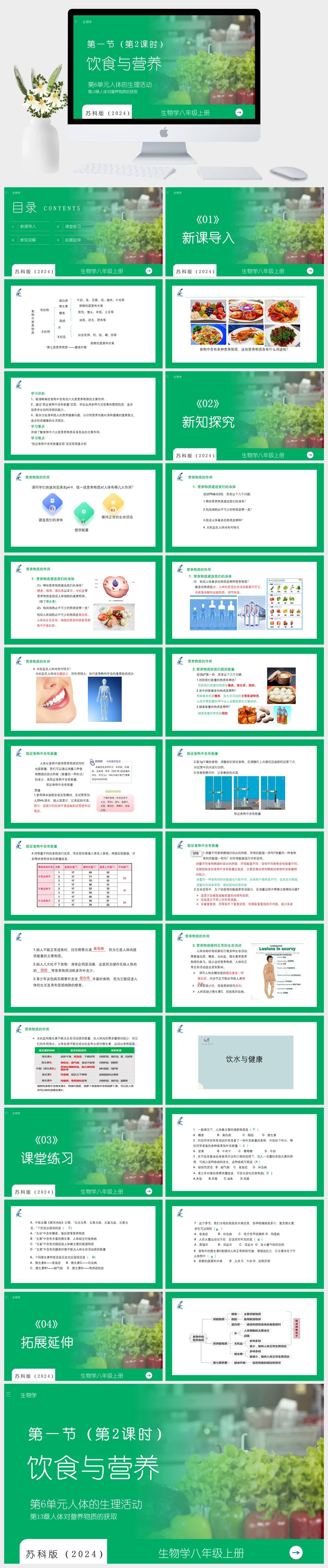 HKSW2285-苏科版(2024)生物学八年级上册第6单元人体的生理活动第13章人体对营养物质的获取第一节饮食与营养(第2课时)PPT模板成品课件