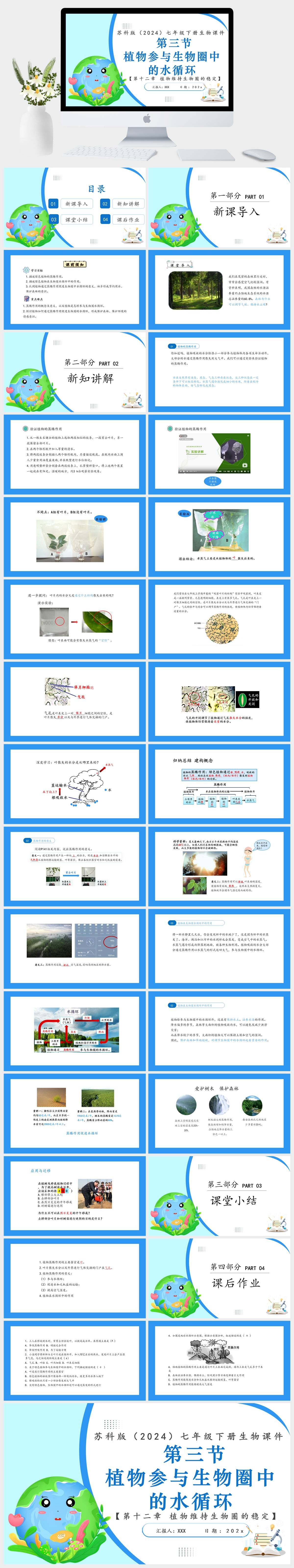 HKSW2314-苏科版(2024)七年级下册生物课件 12.3 植物参与生物圈中的水循环PPT模板成品课件