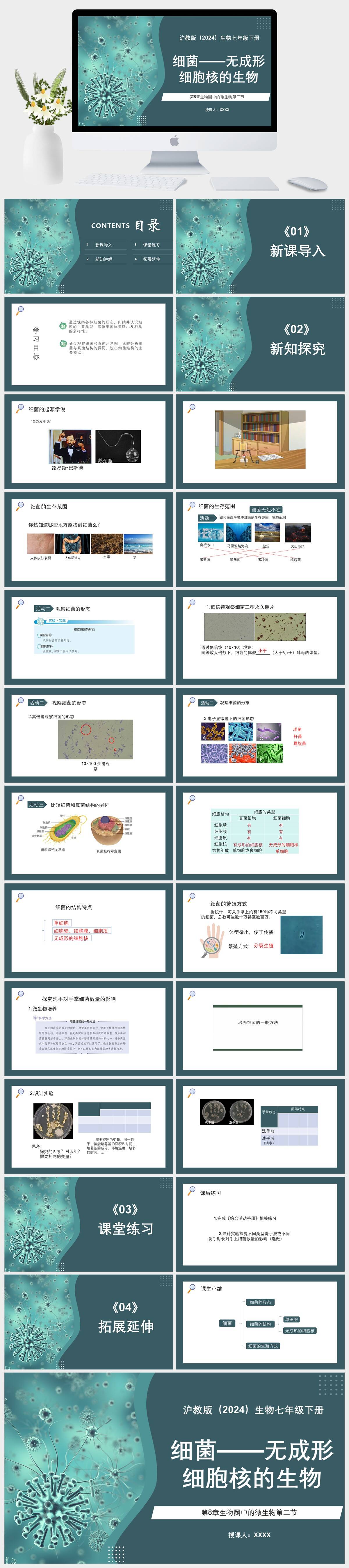 HKSW2353-沪教版(2024)生物七年级下册第8章生物圈中的微生物第二节细菌——无成形细胞核的生物PPT模板成品课件