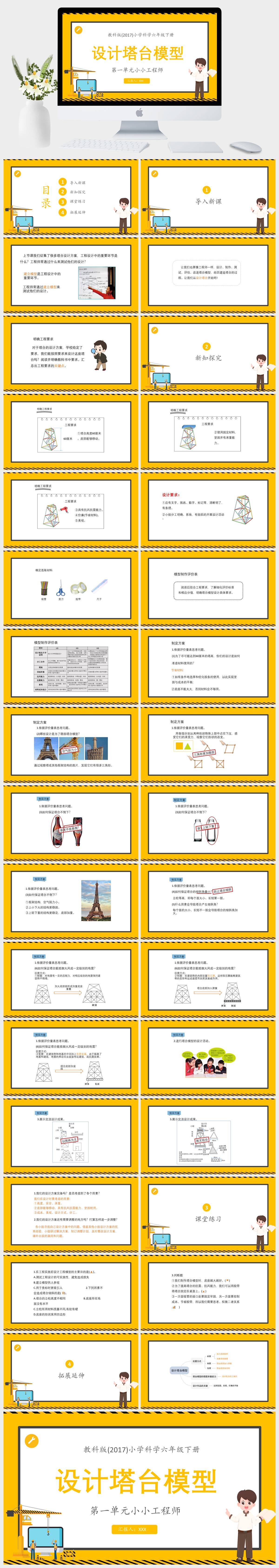 HKKX87-教科版(2017)小学科学六年级下册第一单元小小工程师建造塔台PPT模板