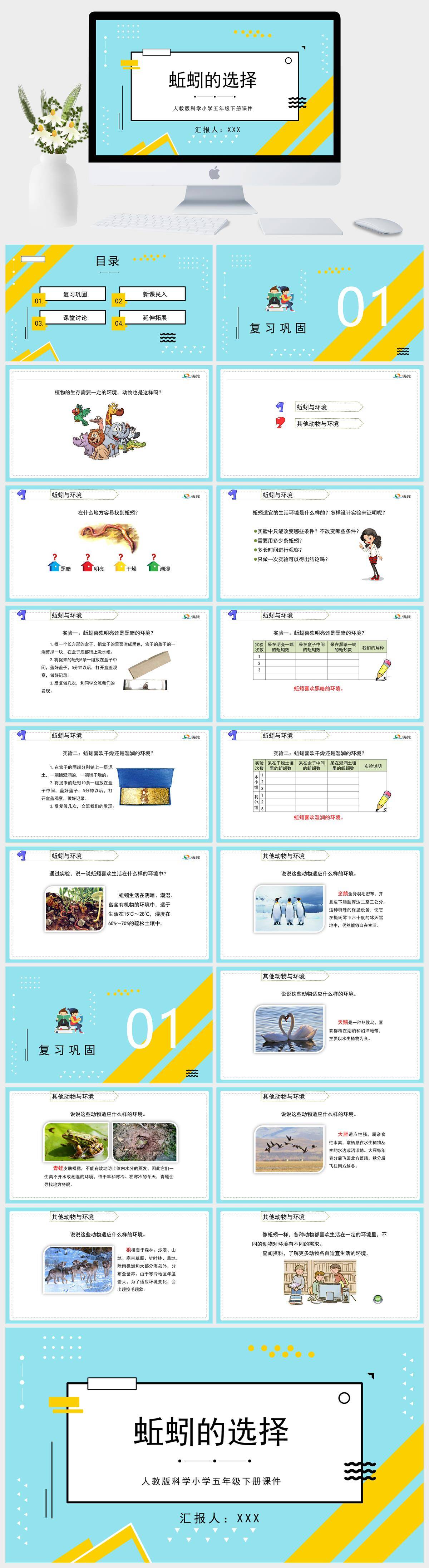 HKKX418-人教版科学小学五年级下册蚯蚓的选择PPT模板 (2)
