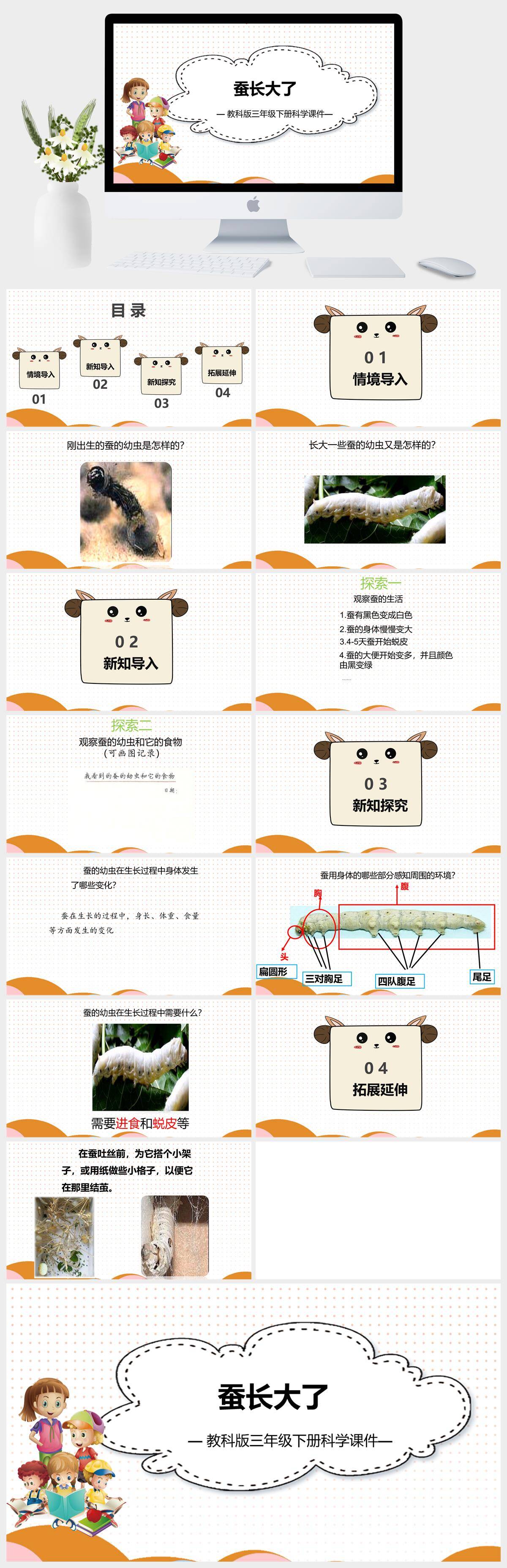 HKKX524-教科版三年级下册科学《蚕长大了》 课件PPT模板