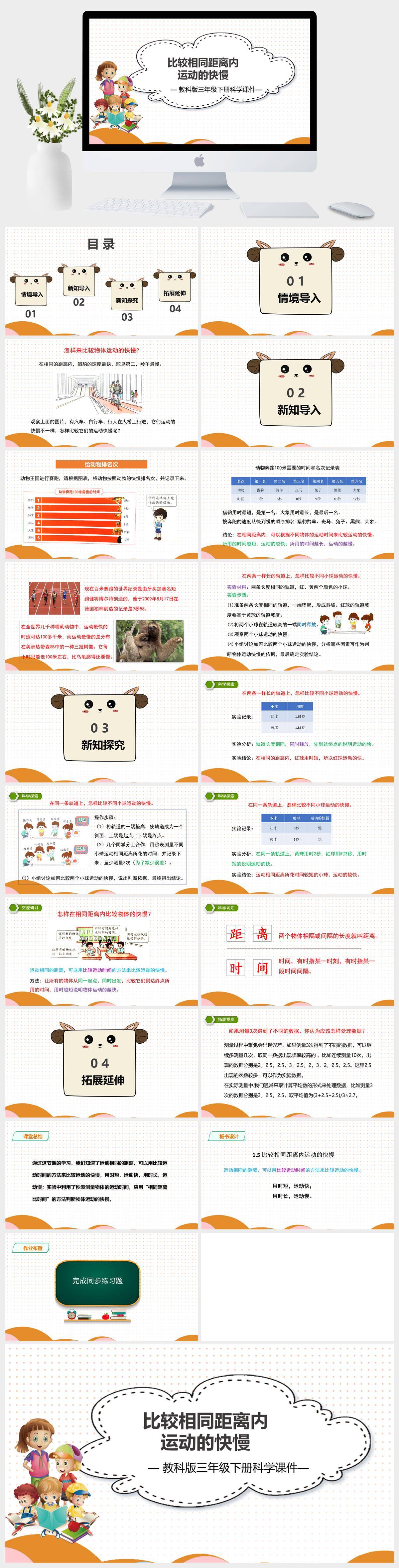 HKKX528-教科版三年级下册科学《比较相同距离内运动的快慢》课件PPT模板