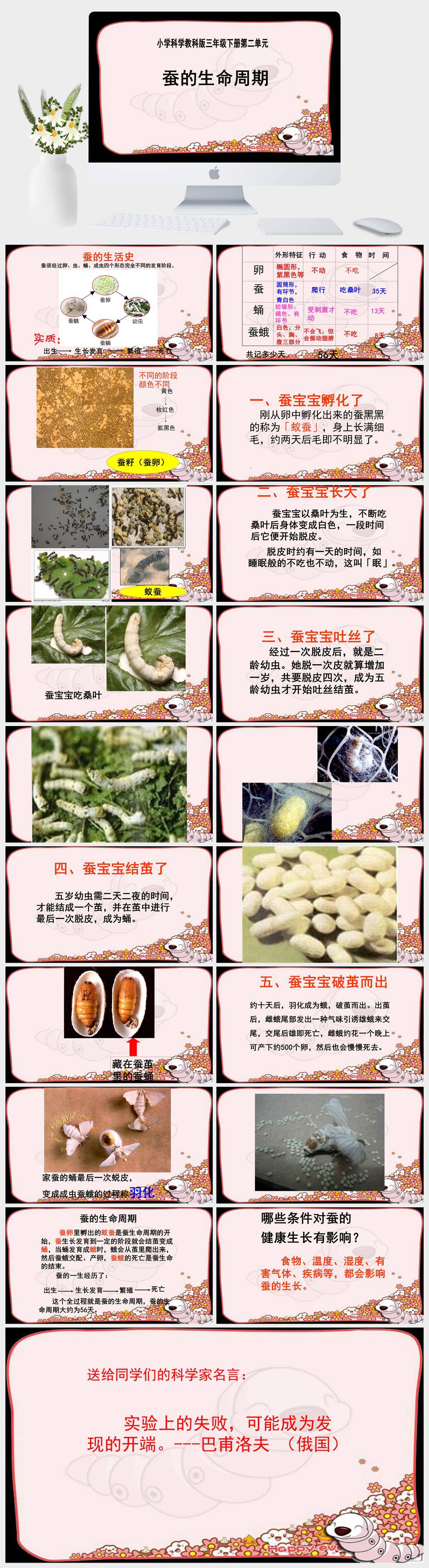 HKKX1097-教科版三年级下册蚕的一生课件PPT模板