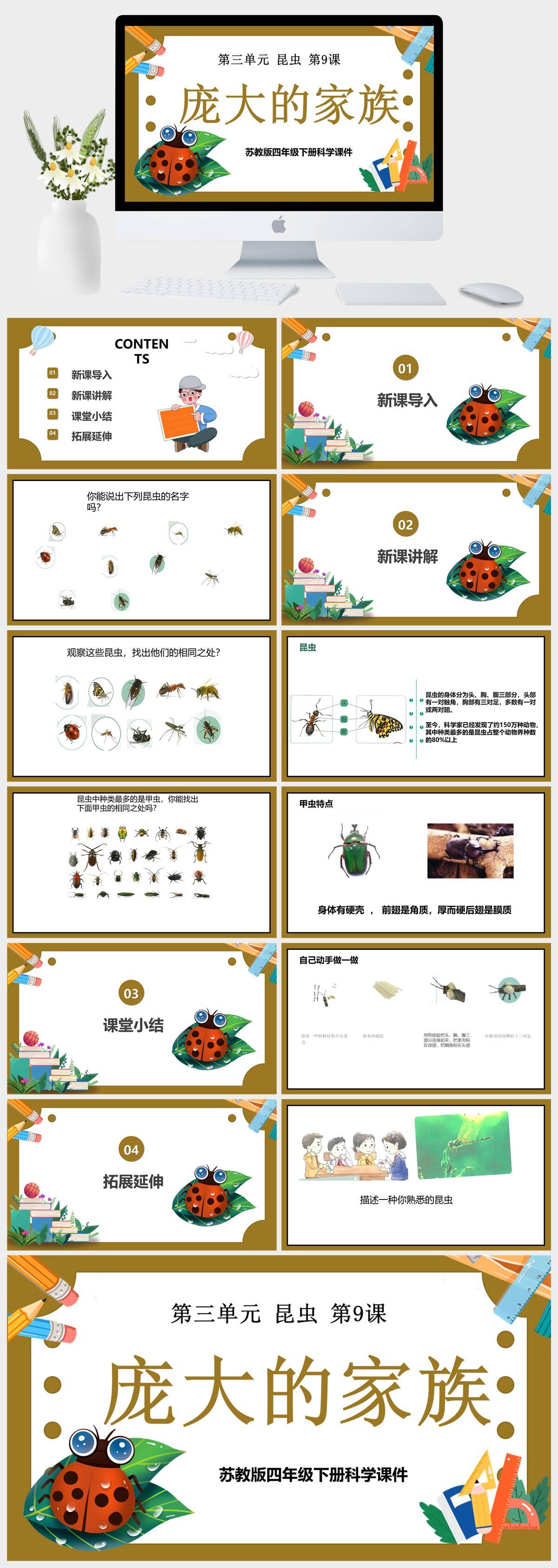 HKKX1180-苏教版四年级下册科学《第三单元 昆虫 第9课庞大的家族》课件PPT模板