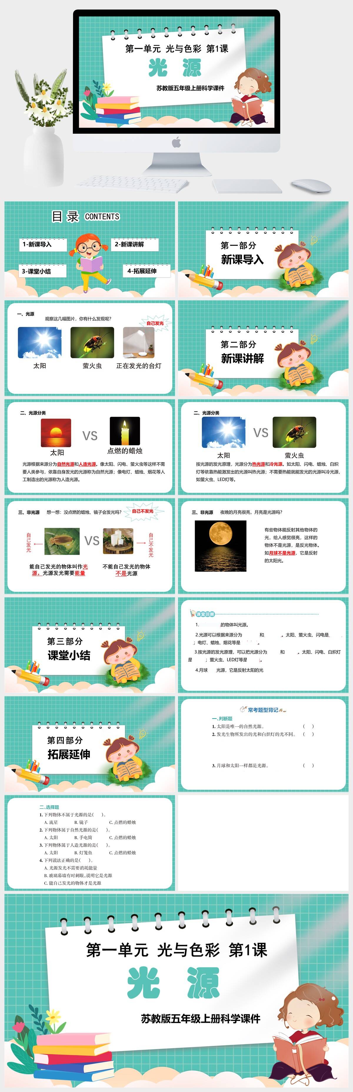 HKKX1222-苏教版五年级上册科学《第一单元 光与色彩 第1课 光源》课件PPT模板