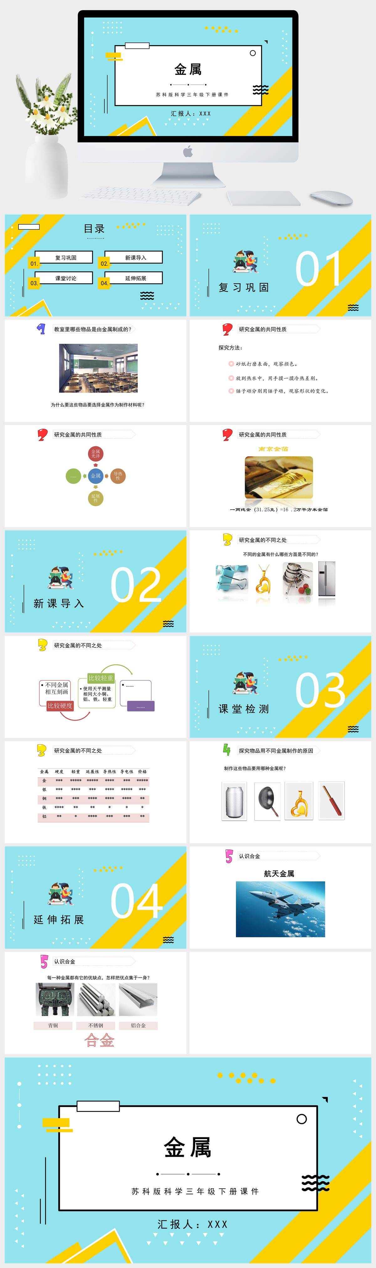 HKKX1303-苏科版科学三年级下册课件金属PPT模板