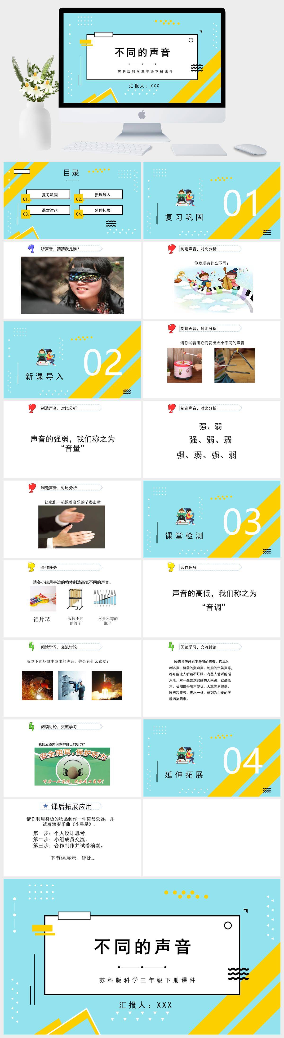HKKX1309-苏科版科学三年级下册课件不同的声音PPT模板