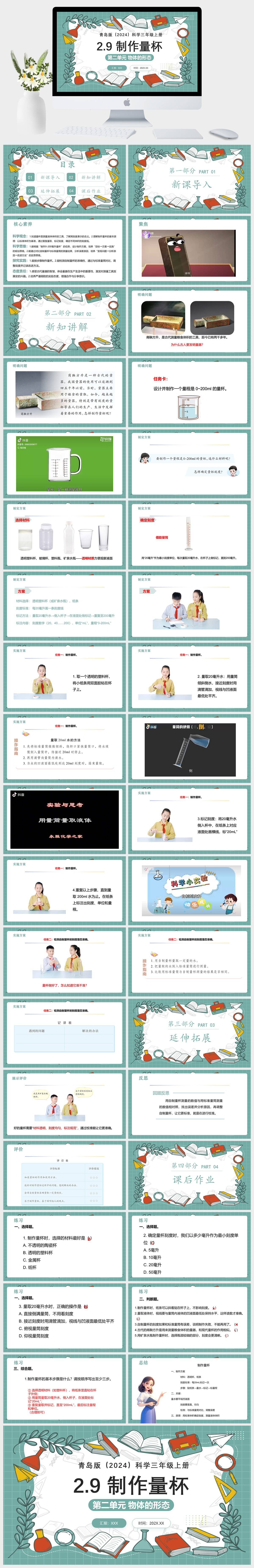 HKKX1488-青岛版(2024)科学三年级上册 第二单元 物体的形态 2.9 制作量杯PPT模板