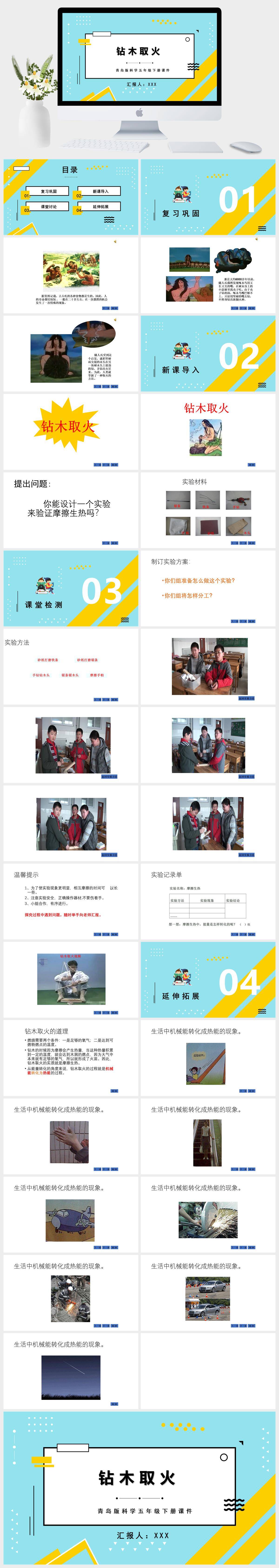 HKKX1599-青岛版科学五年级下册课件钻木取火PPT模板