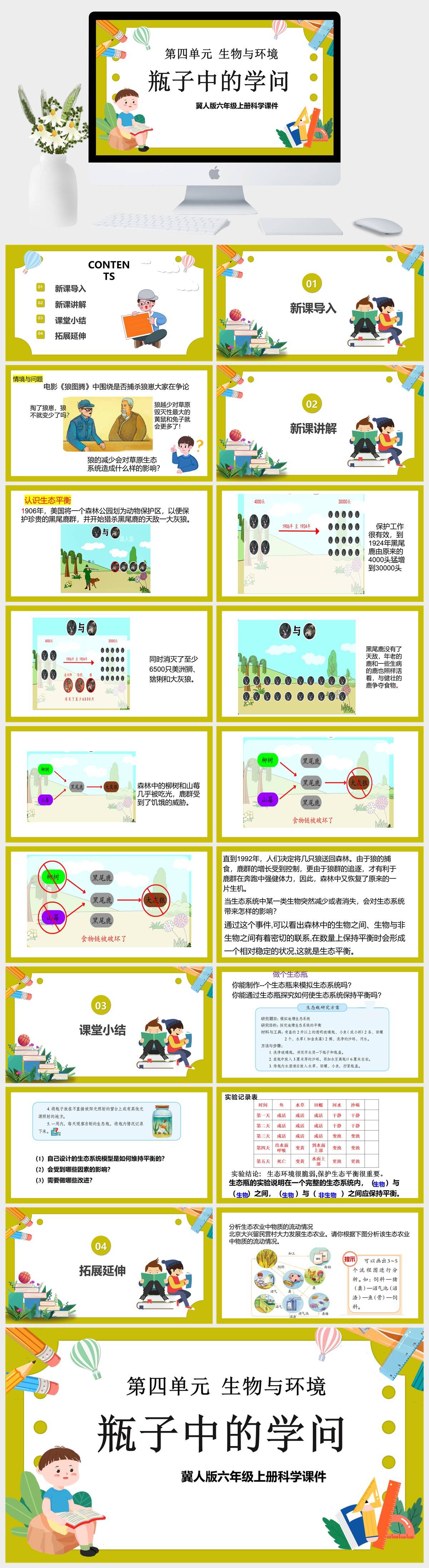 HKKX1834-冀人版六年级上册科学《第四单元 生物与环境 第15课 瓶子中的学问》课件PPT模板