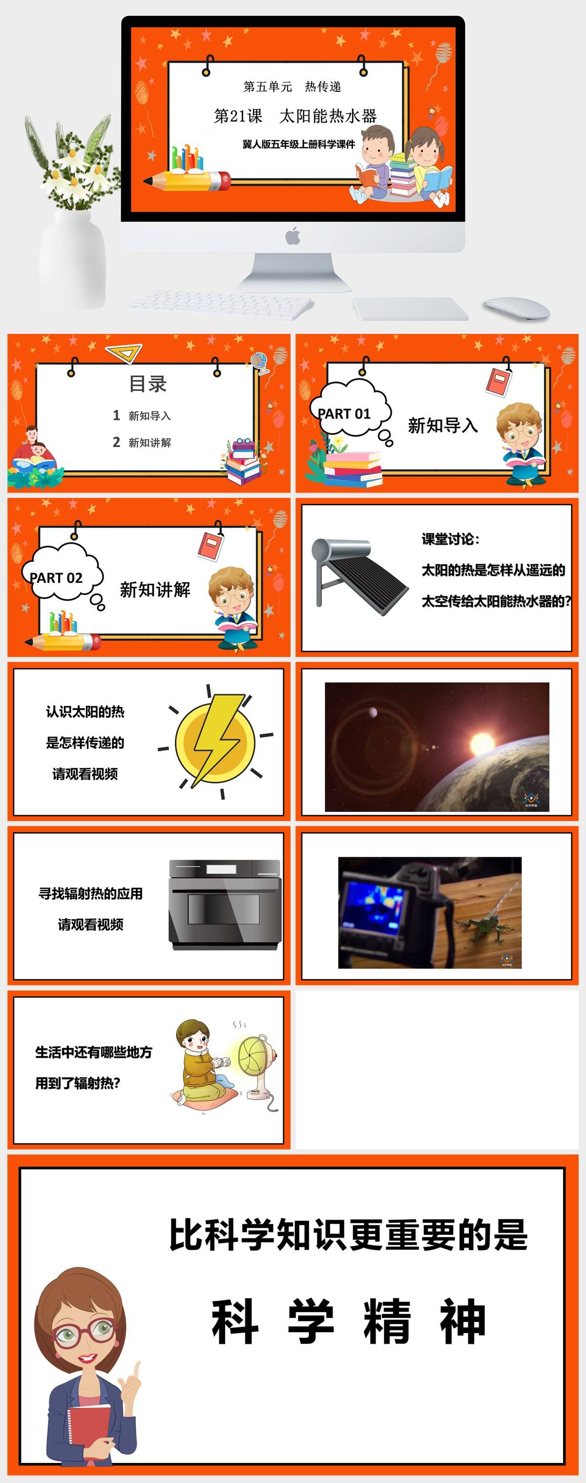 HKKX1886-冀人版五年级上册科学《第五单元 热传递 第21课 太阳能热水器》课件PPT模板