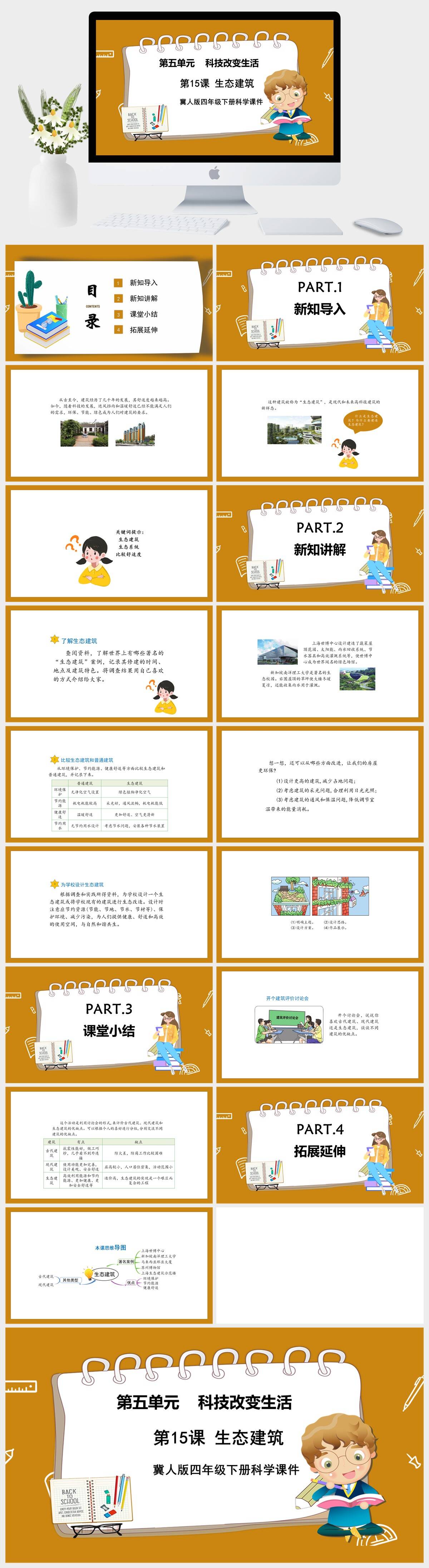 HKKX1923-冀人版四年级下册科学《第五单元 科技改变生活 第15课 生态建筑》课件PPT模板