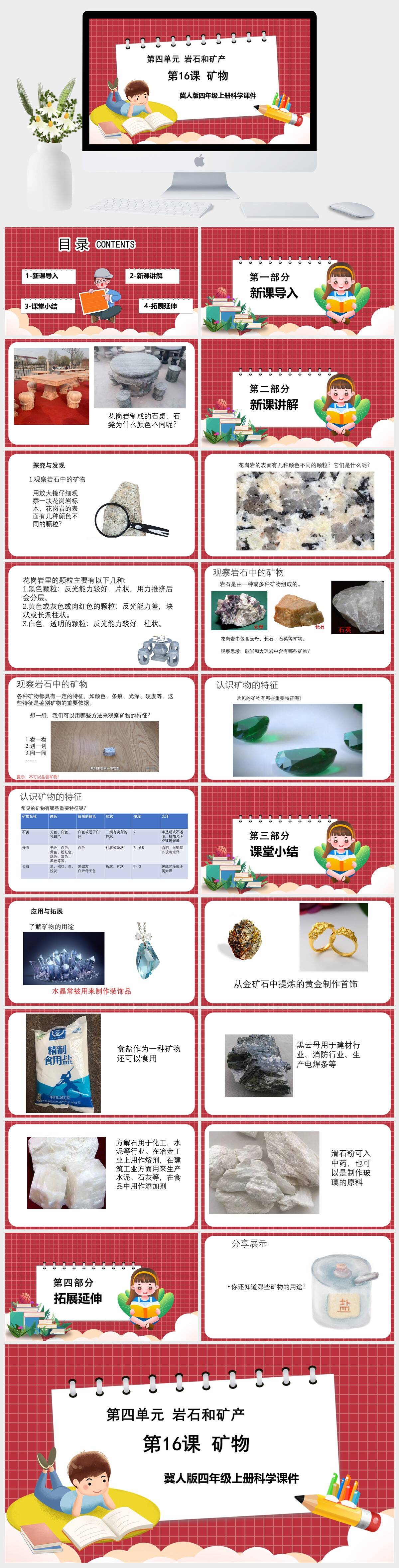 HKKX1933-冀人版四年级上册科学《第四单元 岩石和矿产 第16课 矿物》课件PPT模板