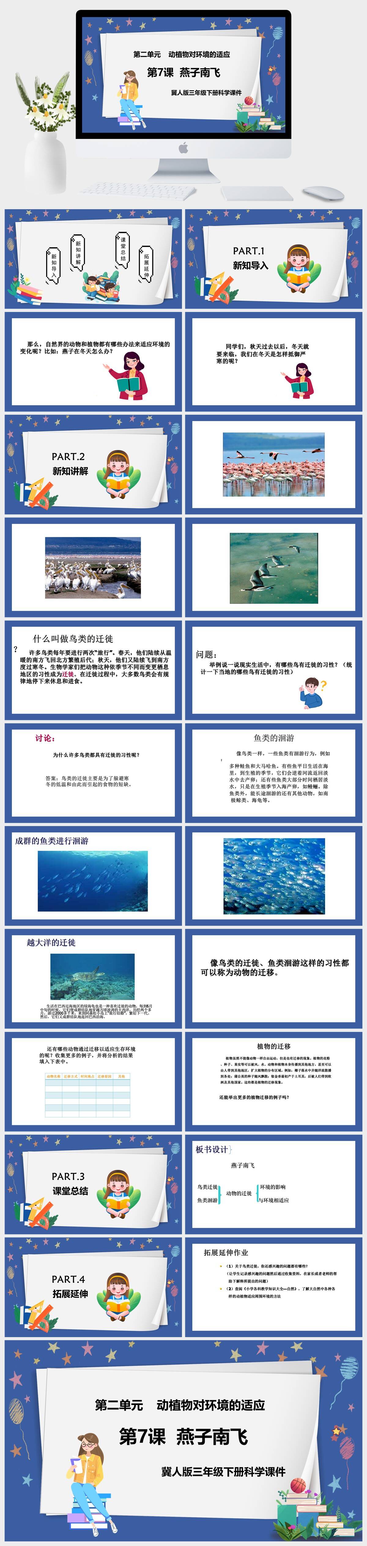 HKKX1968-冀人版三年级下册科学《第二单元 动植物对环境的适应 第7课 燕子南飞》课件PPT模板