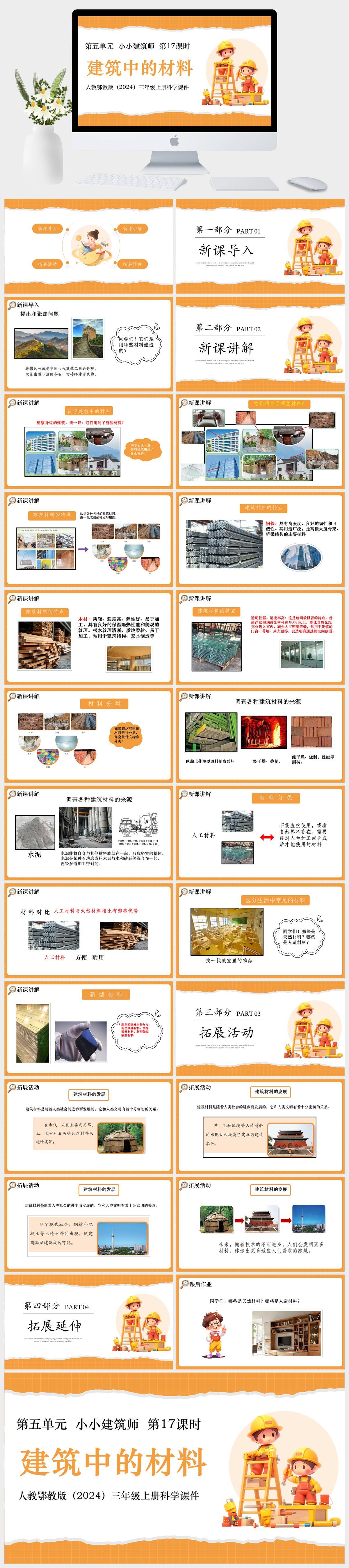 HKKX1989-人教鄂教版(2024)三年级上册科学第五单元 小小建筑师 第17课时 建筑中的材料课件PPT模板