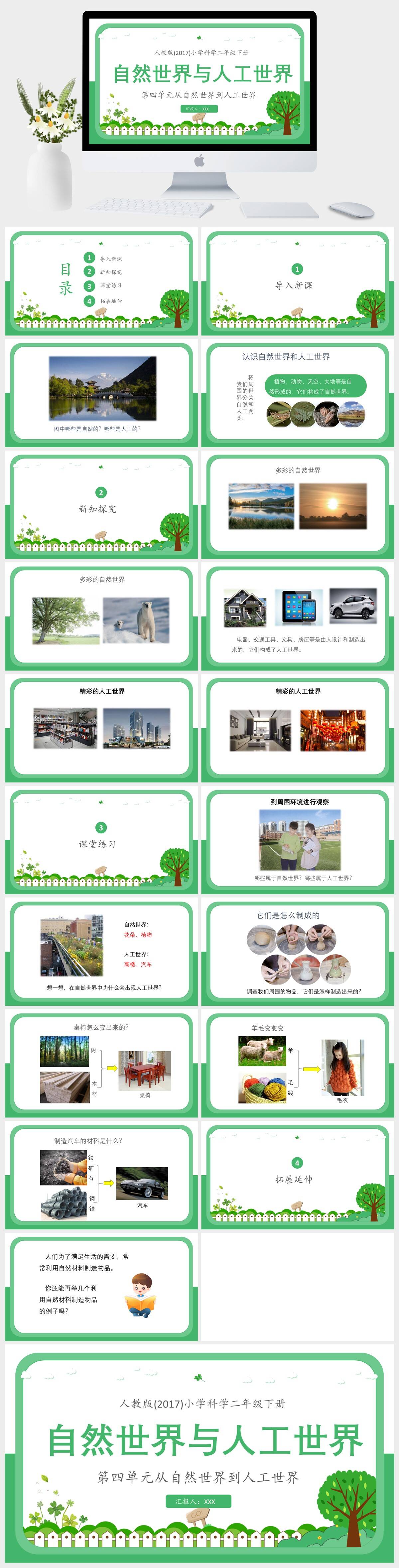HKKX2094-人教版(2017)小学科学二年级下册第第四单元从自然世界到人工世界自然世界与人工世界PPT模板