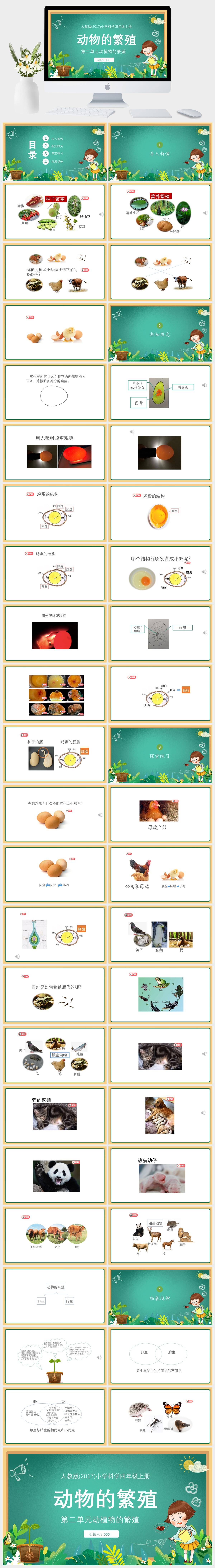 HKKX2171-人教版(2017)小学科学四年级上册第二单元动植物的繁殖动物的繁殖PPT模板