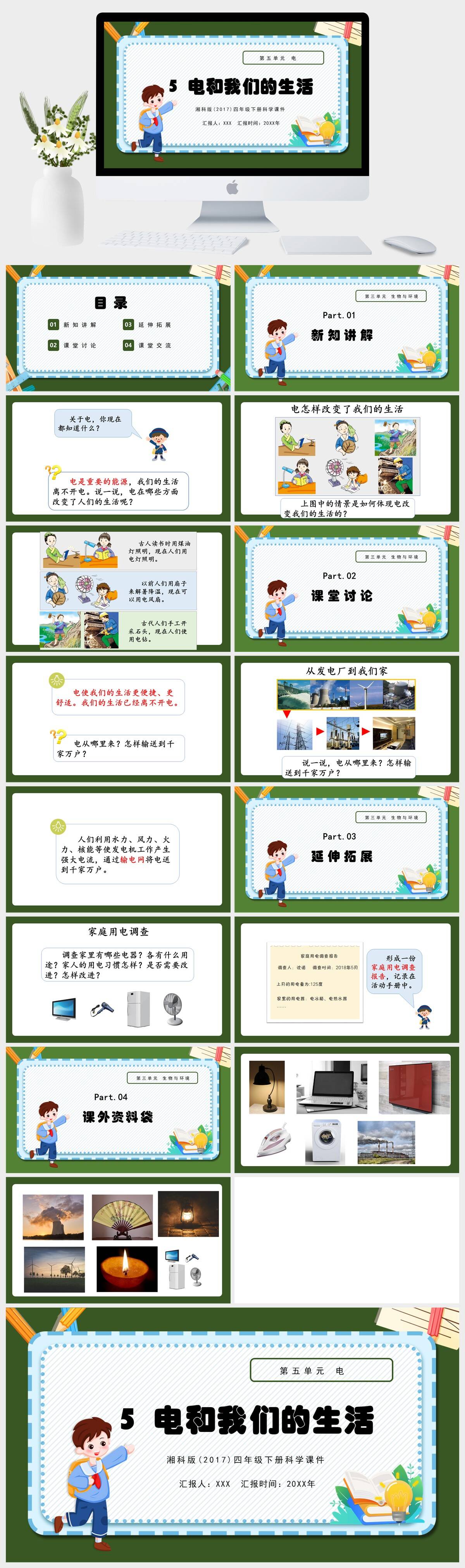 HKKX2260-湘科版(2017)四年级下册科学课件第五单元 电第五课时电和我们的生活PPT模板