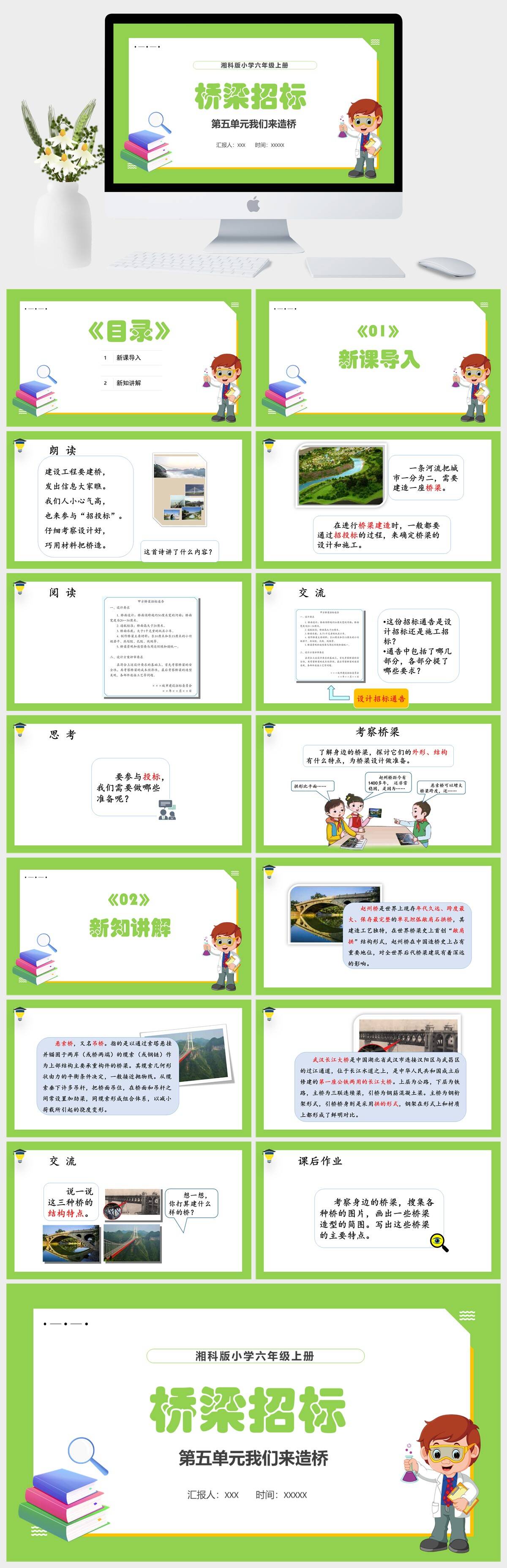HKKX2289-湘科版小学六年级上册第五单元我们来造桥桥梁招标PPT模板