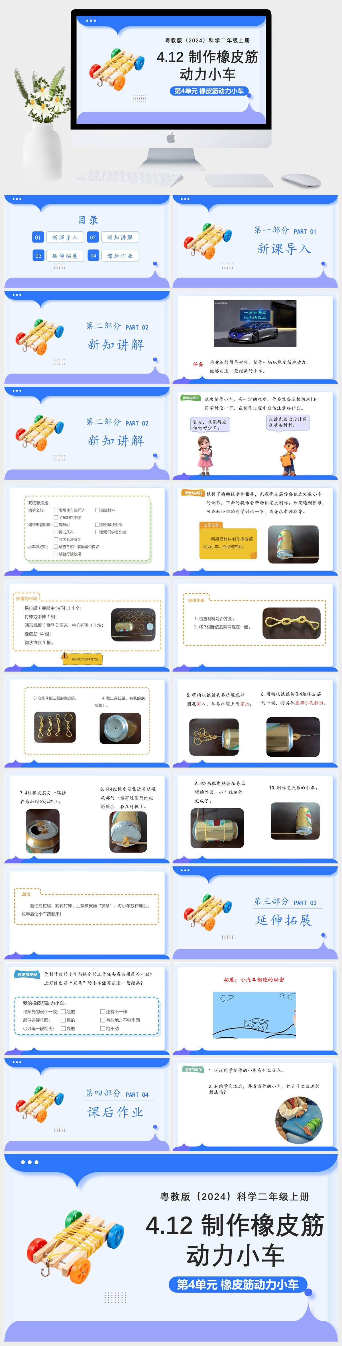 HKKX2390-粤教版(2024)科学二年级上册 第4单元 橡皮筋动力小车 第12课 制作橡皮筋动力小车PPT模板