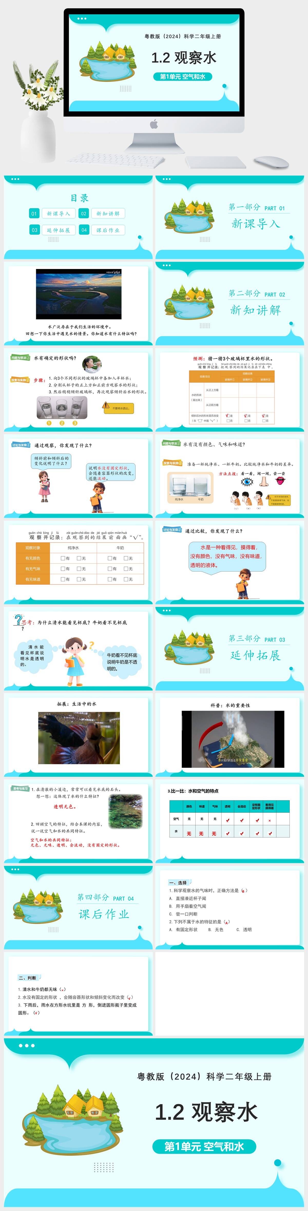 HKKX2399-粤教版(2024)科学二年级上册 第1单元 空气和水 第2课 观察水课件PPT模板