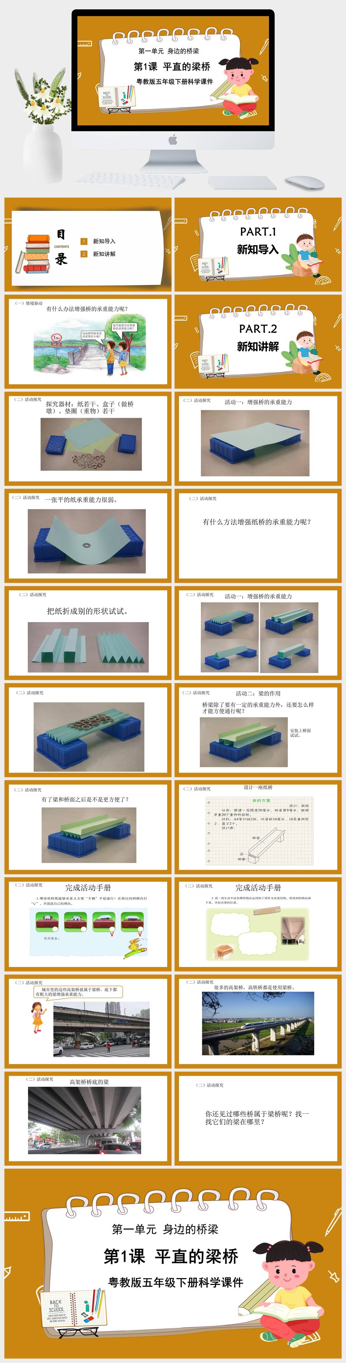 HKKX2498-粤教版五年级下册科学《第一单元 身边的桥梁 第1课 平直的梁桥 》课件PPT模板