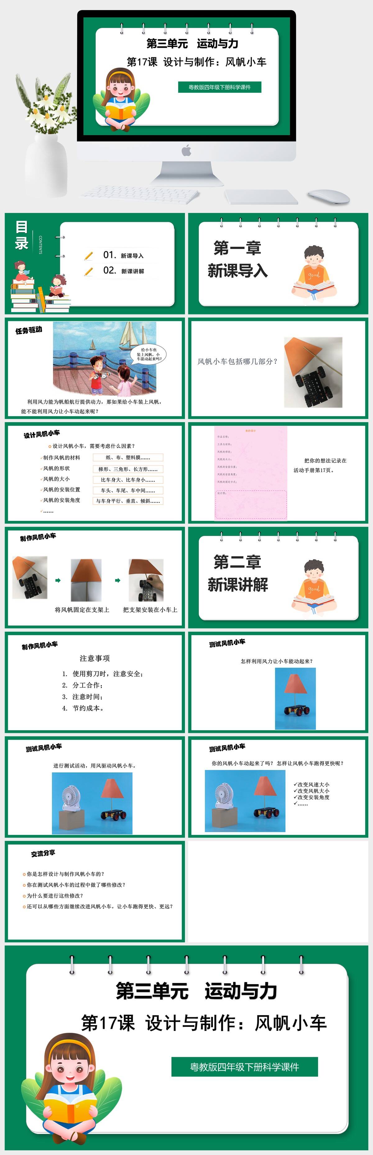 HKKX2528-粤教版四年级下册科学《第三单元 运动与力第17课 设计与制作:风帆小车》课件PPT模板