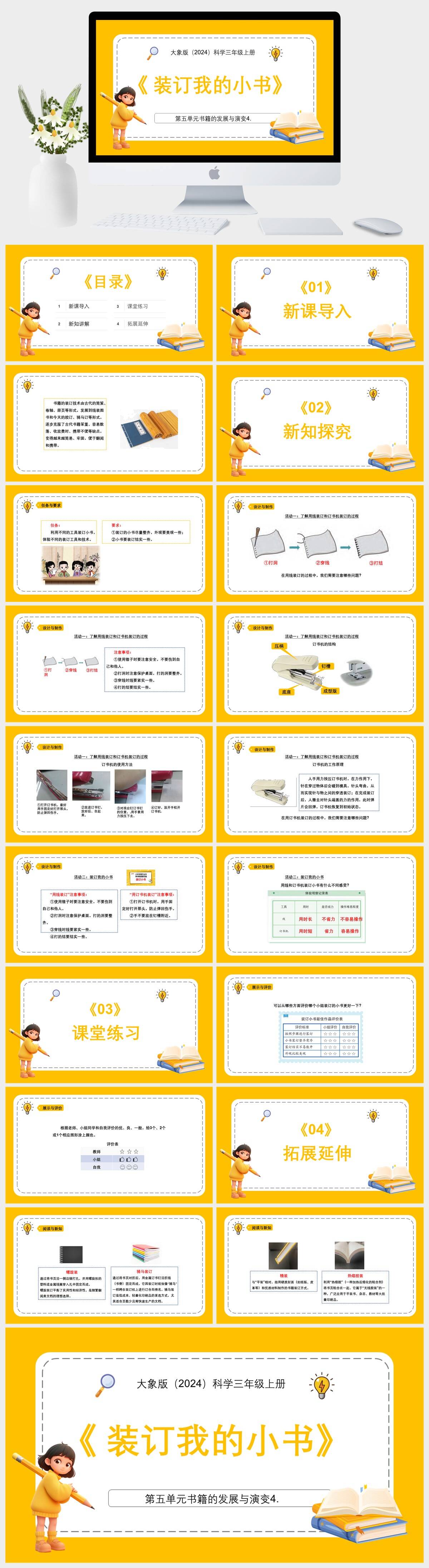 HKKX2611-大象版(2024)科学三年级上册第五单元书籍的发展与演变4. 装订我的小书PPT模板