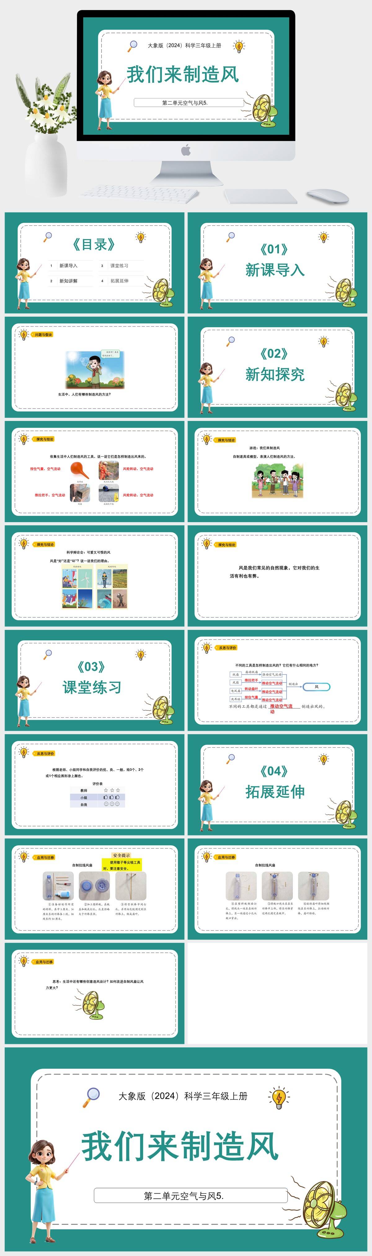 HKKX2633-大象版(2024)科学三年级上册第二单元空气与风5.我们来制造风PPT模板