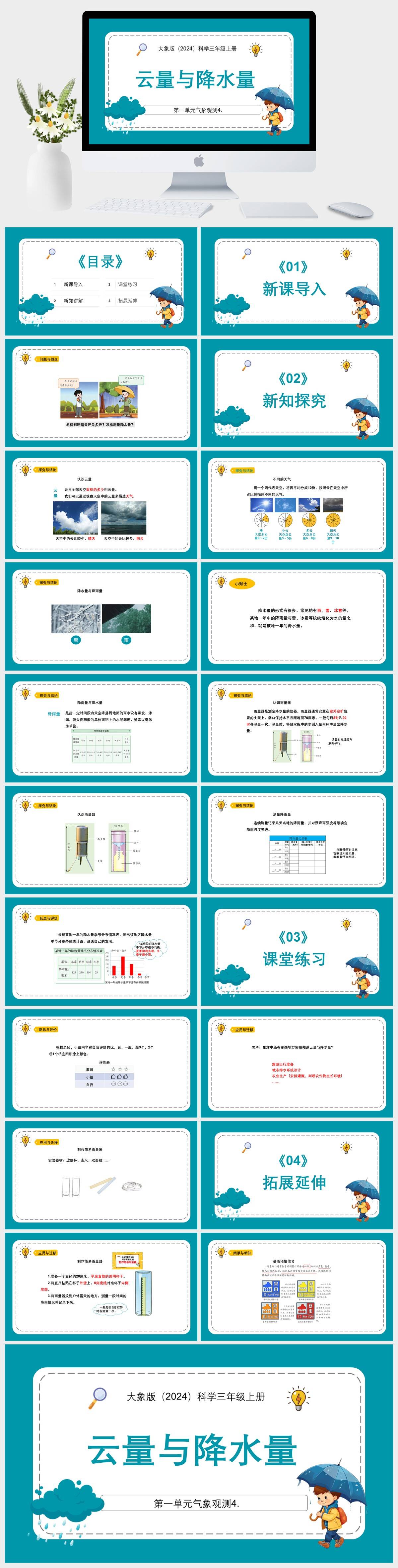 HKKX2650-大象版(2024)科学三年级上册第一单元气象观测4.云量与降水量PPT模板