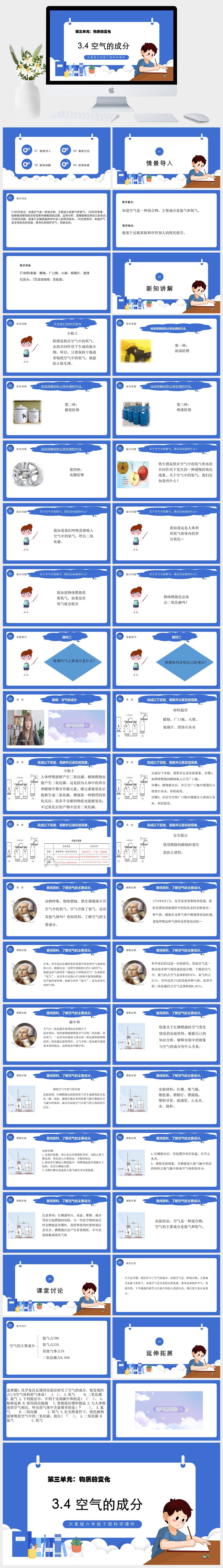 HKKX2702-大象版六年级下册科学课件第三单元:物质的变化3.4 空气的成分PPT模板