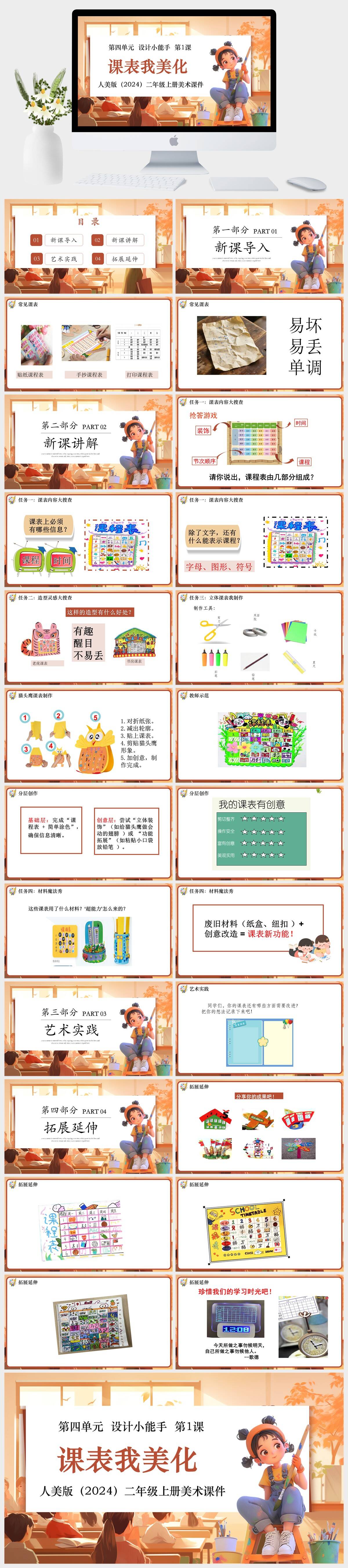 HKMS42-人美版(2024)二年级上册美术 第四单元 设计小能手 第1课 课表我美化课件PPT模板