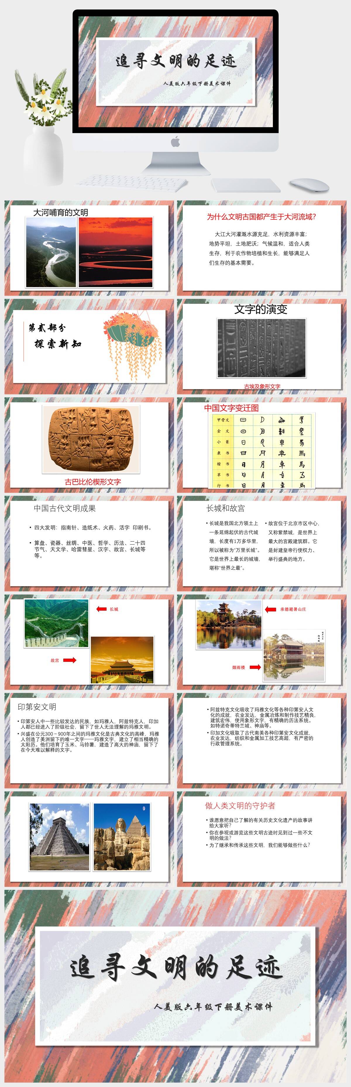 HKMS100-人美版六年级下册美术《追寻文明的足迹》课件PPT模板