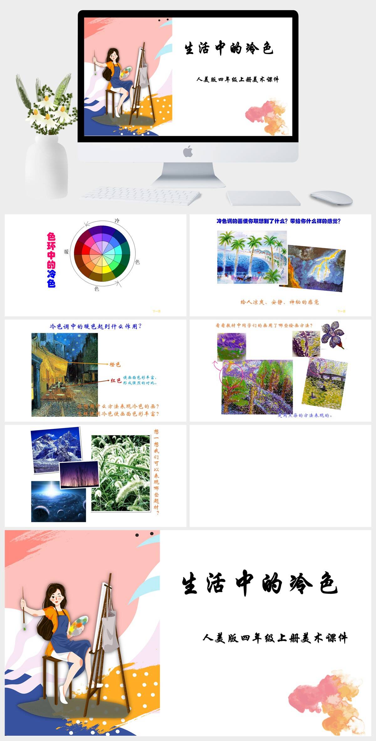 HKMS354-人美版四年级上册美术第3课《生活中的冷色》PPT课件模板 (2)