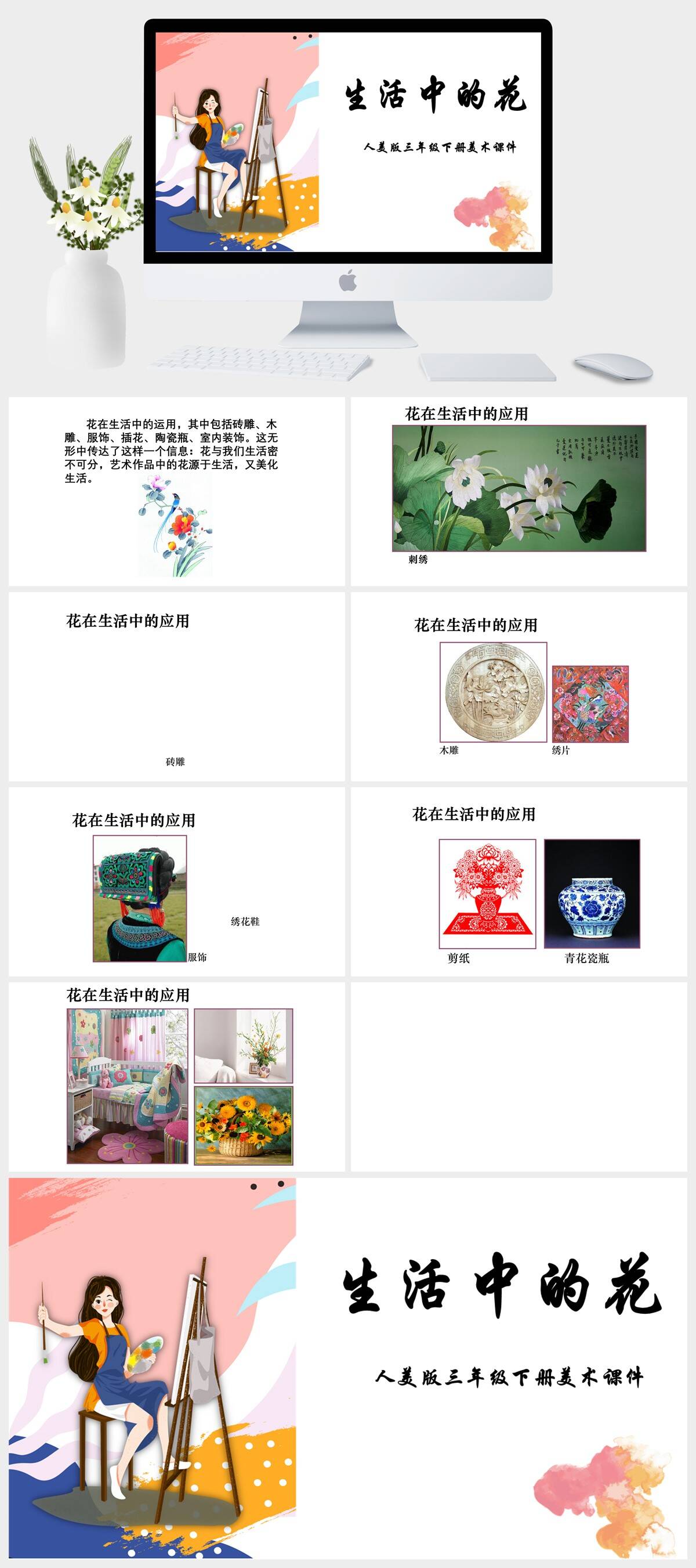 HKMS406-人美版三年级下册美术《生活与艺术中的花》课件PPT模板