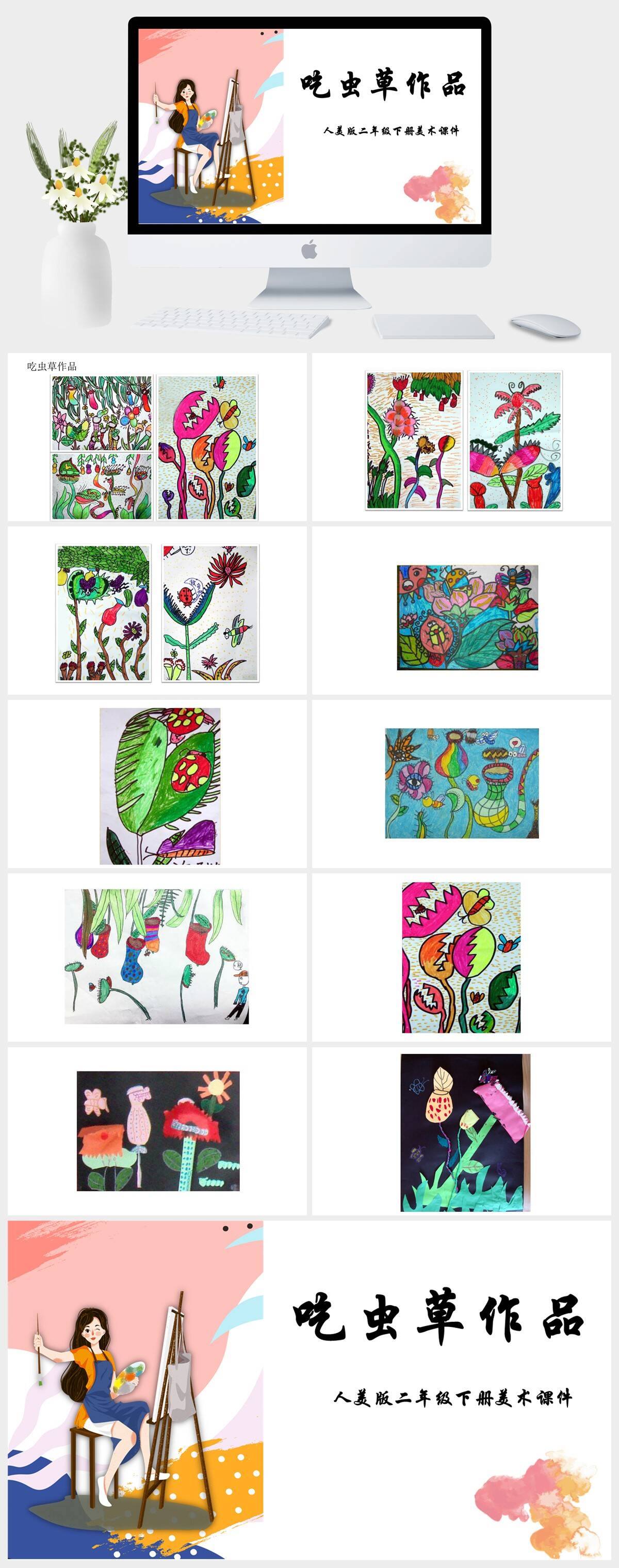 HKMS514-人美版二年级下册美术《吃虫草作品》课件PPT模板