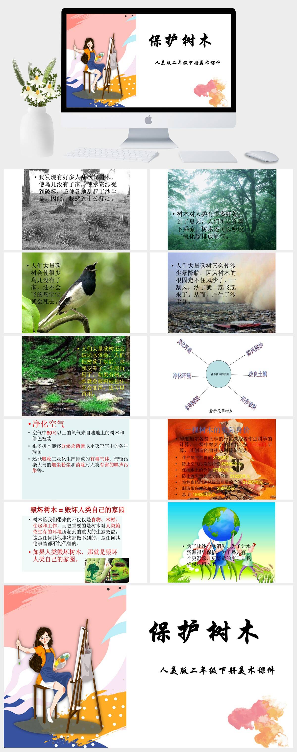HKMS517-人美版二年级下册美术《保护树木 人人有责》课件PPT模板