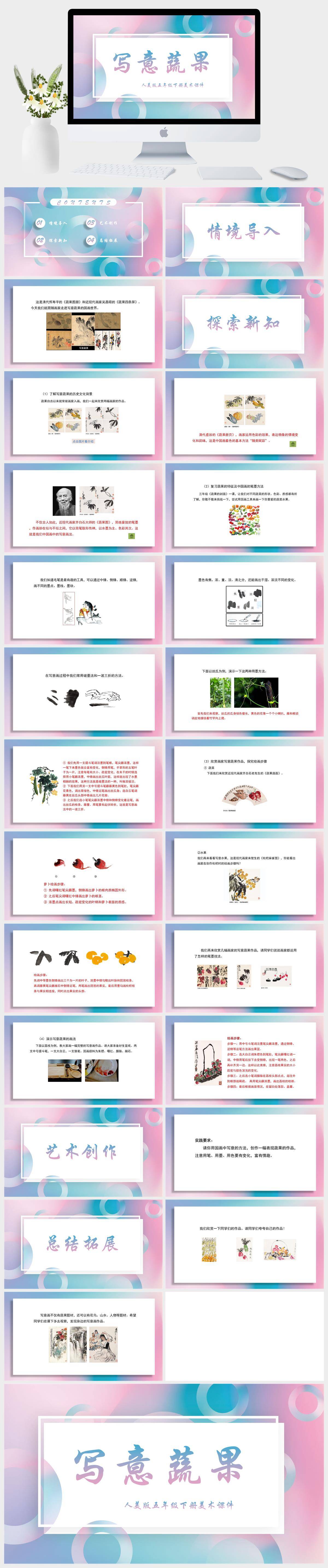 HKMS562-人美版五年级下册美术《写意蔬果》 课件PPT模板