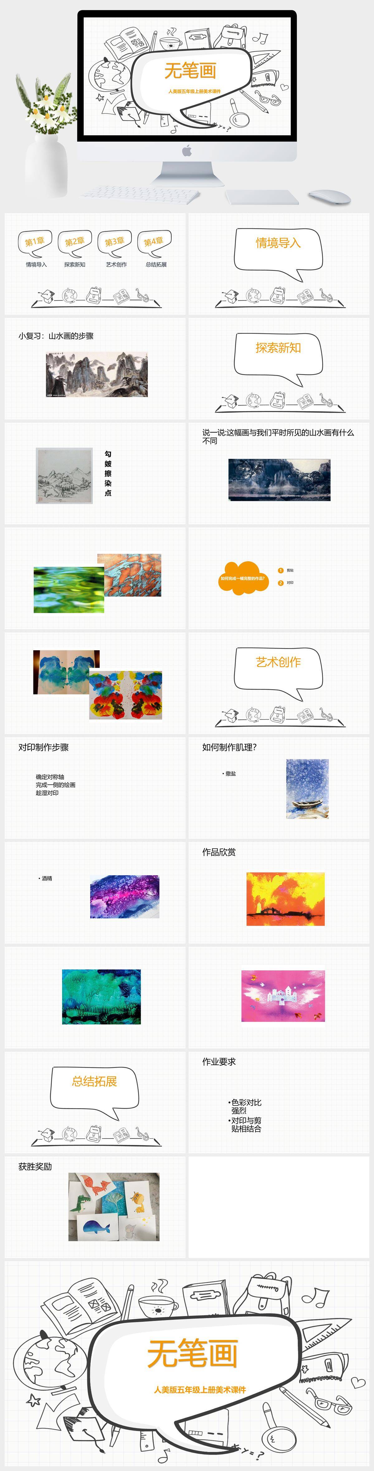 HKMS720-人美版五年级上册美术《无笔画》课件PPT 模板