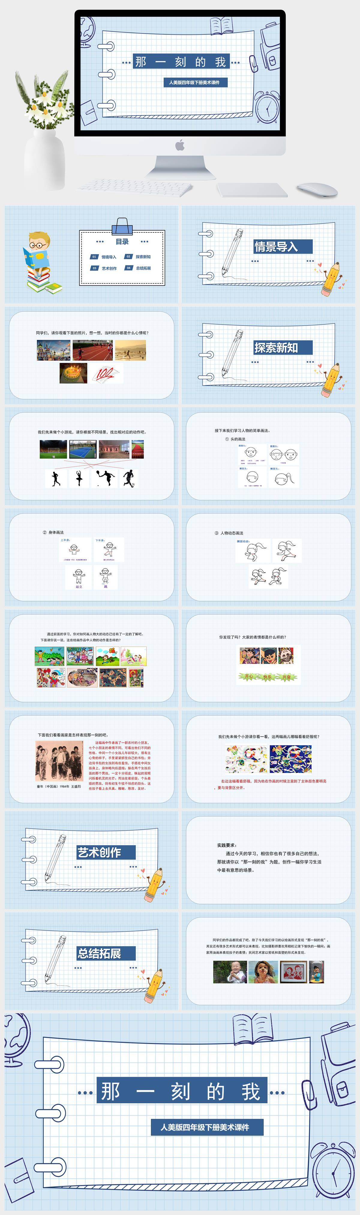 HKMS766-人美版四年级下册美术《那一刻的我》课件PPT模板